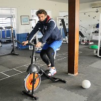 Iván Alonso en el gimnasio de Los Céspedes realizando ejercicios en la bicicleta.