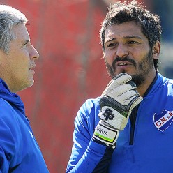 Alvaro Gutiérrez, el técnico de Nacional, y el arquero Gustavo Munúa en la previa a Wanderers.