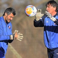 Gustavo Munúa trabajando con Leonardo Romay esta mañana en Los Céspedes, aprontando el amistoso en San José.