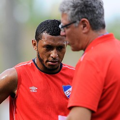 El colombiano Carlos Valdes y el técnico, Alvaro Gutiérrez, en la previa a Nacional - Wanderers.