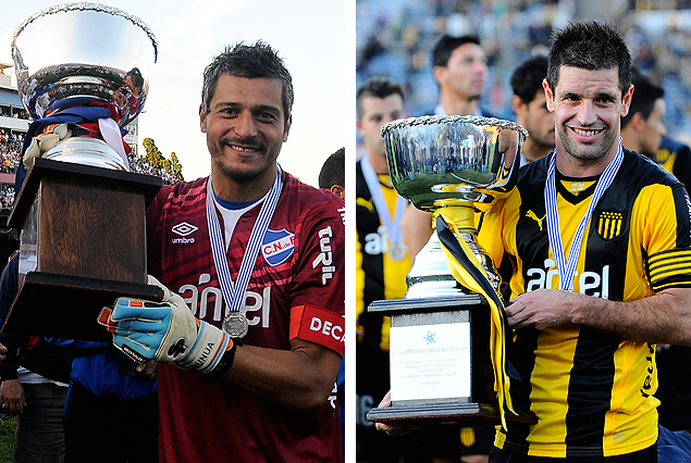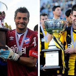 CLASICOS CAMPEONES: Gustavo Munúa con la Copa del Apertura, Antonio Pacheco con la del Clausura.