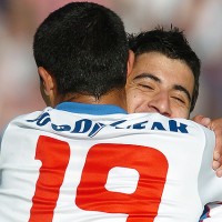Gonzalo Castro (camiseta 19) y el "Chori" Castro, en el apretado festejo en el 5:1 del 2005. Aquella tarde Albín marcó 3 y Gonzalo Castro 2.