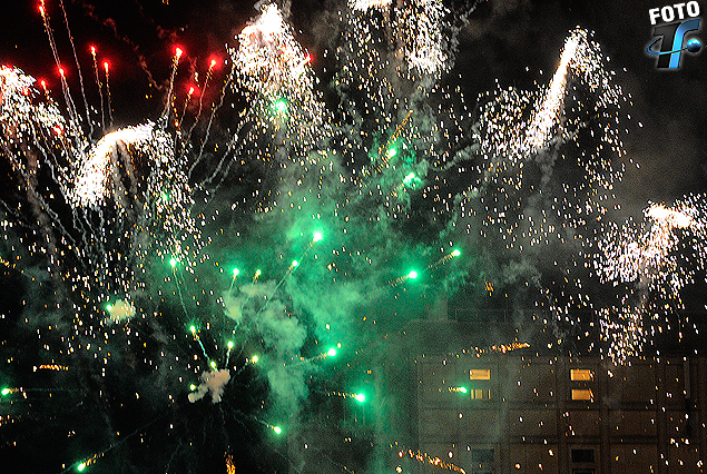 Fuegos… Las 500 personas que se dieron cita en la fría noche del estadio Franzini, tuvieron como premio final un espectáculo de fuegos artificiales que sirvieron para decirle adiós y buena suerte a los celestes.