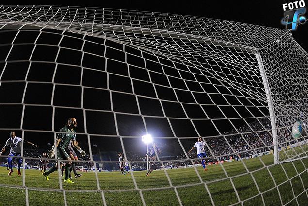 El primer gol de Rodrigo Aguirre. El arquero vencido, la pelota en la red.