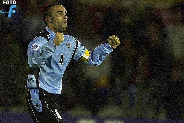 Paolo Montero festeja su gol en el triunfo por 1:0 sobre Paraguay en 2004.