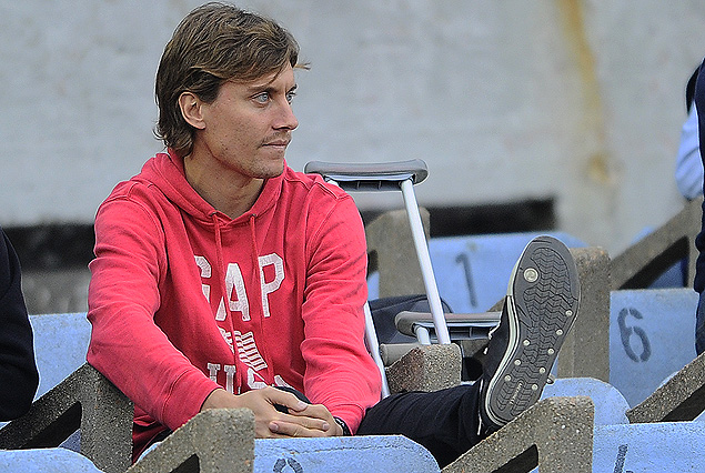 Lesionado… Matías Quagliotti, caminando con muletas, pero siempre junto a Wanderers. El zaguero recientemente operado de rotura de ligamentos en rodilla, se ubicó en la plata y festejó el triunfo bohemio. Vuelve el año que viene.