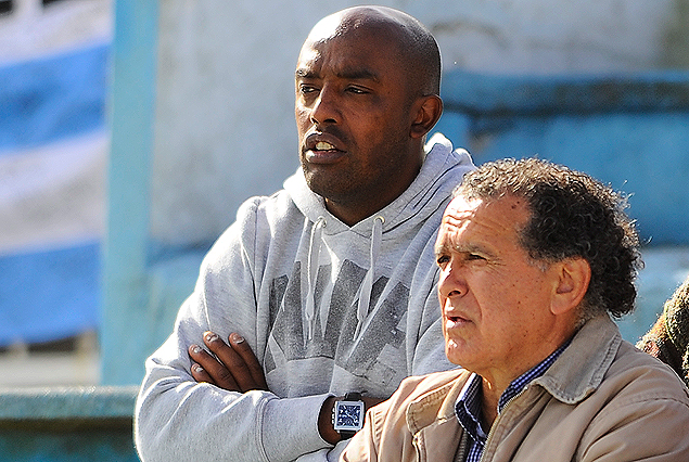 Oscar Javier Morales y Jorge "Culaca" González, en la tribuna oficial del estadio Tróccoli.