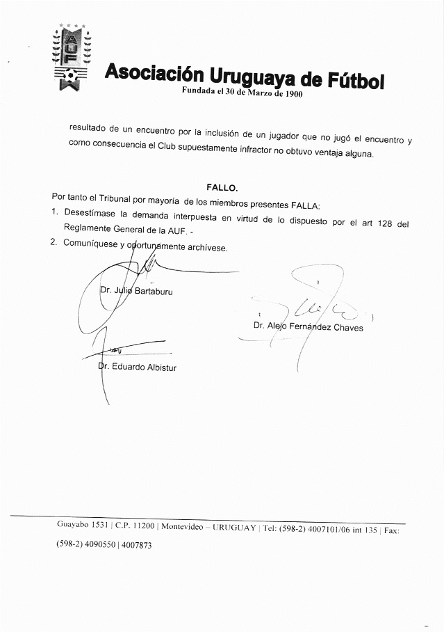 No hay norma expresa que regule la situación, por lo tanto, la mayoría del Tribunal de Contiendas consideró que para quitar puntos, el jugador debe haber participado o debe haber entrado en acción. En este caso no lo hizo, no participó, por lo tanto, Cerro no usufructuó una ventaja de jugar con futbolista inhabilitado.