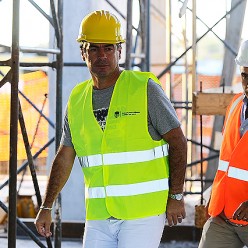 Pablo Bengoechea en la nueva casa aurinegra. El “Profesor” por primera vez visitó las obras del estadio que se está construyendo en la ruta 102. Al entrenador, se unieron sus compañeros de cuerpo técnico (Oscar Aguirregaray, el profesor Modesto Turrén y el profesor Sebastián Roquero), un grupo de futbolistas (Antonio Pacheco, Jonathan Urretaviscaya, Pablo Migliore, Carlos Valdez, Diogo Silvestre, Andrés Rodales, Gonzalo Viera, Marcel Novick, Gianni Rodríguez, Octavio Colo y Adriano Freitas) y Fernando Morena. La recorrida fue guiada por el ingeniero Alejandro Ruibal, director de Saceem, quien les mostró los planos de la proyección del estadio finalizado y a continuación luego de ponerse la indumentaria adecuada con casco incluido, ingresaron a observar el predio, caminando por el sitio donde estará enclavado el campo de juego que comenzará a ser sembrado en abril.