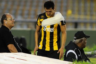 REGRESO: El arribo del carbonero al Estadio Centenario se produjo a las 17:45. La presencia de “Tony” Pacheco en el plantel causó revuelo en los hinchas. El ídolo volvió a casi seis meses de la fractura de tibia y peroné desde el banco de suplentes. La imagen de Tenfield.com exhibió a Pacheco en el ingreso, feliz, en la vuelta y el arquero Enrique Bologna siguiendo la fila de los aurinegros. El partido ante Fénix comienza a las 19:00 horas en el arranque del Torneo Clausura.