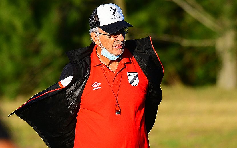 Sebastián "Papelito" Fernández, flamante alta de Danubio. Atrás aparece Fossati, atento en todos los detalles.