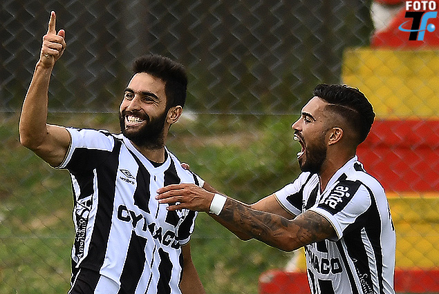 Rodrigo Pastorini y el festejo del primer gol junto a Nicolás Albarracin.