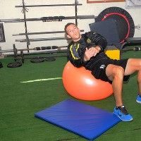 Joe Bizera trabajando en el gimnasio, buscando recuperarse de la molestia muscular.
