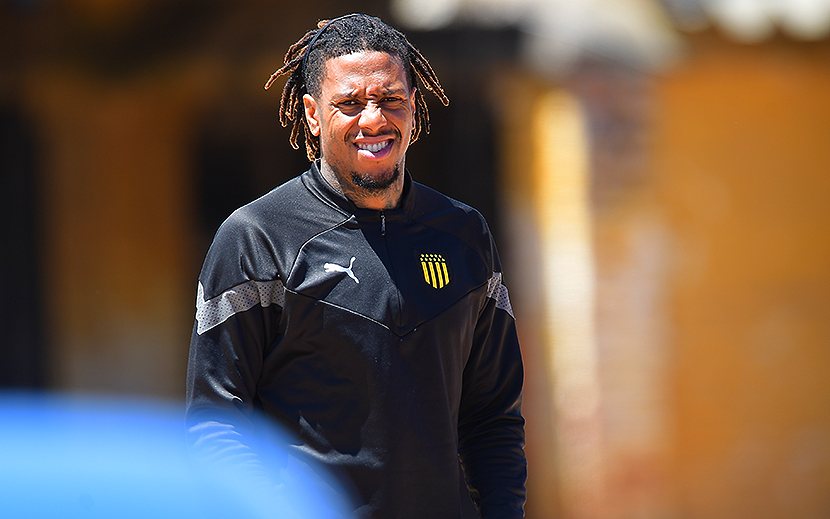 Damián García, botella de agua en la mano derecha, camino al gimnasio de Los Aromos este lunes por la mañana en el retorno de los aurinegros a los entrenamientos. Podría estar a la orden en el clásico.