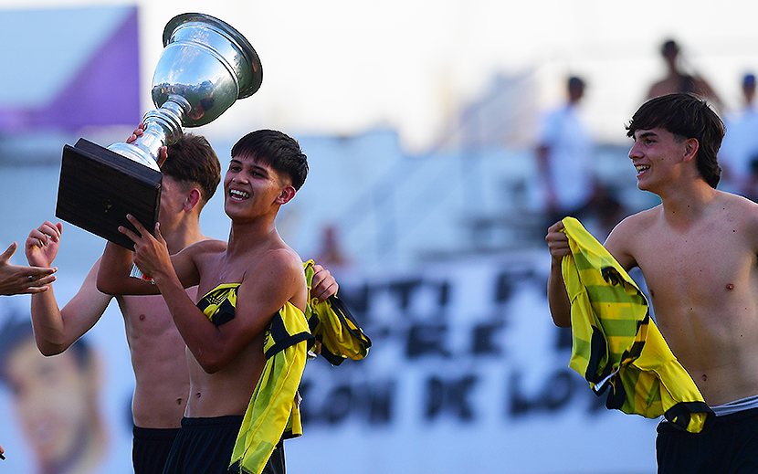 Los jugadores de Peñarol de la categoría sub 15 festejan con la copa la obtención del Campeonato Uruguayo.