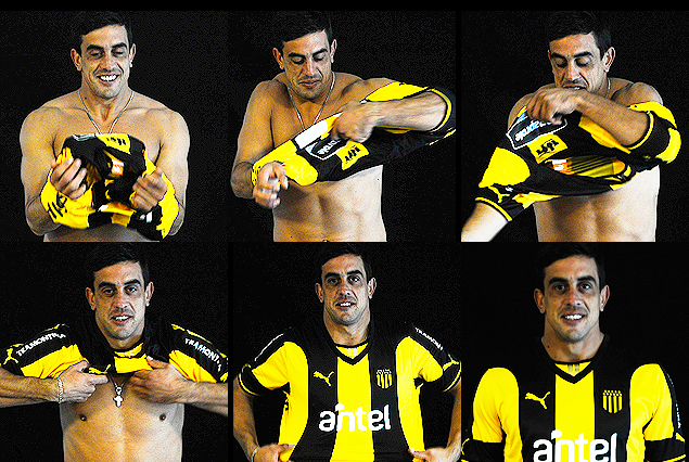 Diego Ifrán con la camiseta de Peñarol en Los Aromos, flamante refuerzo de los aurinegros.