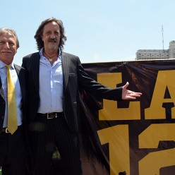 La fórmula de la lista 12 en las elecciones de Peñarol: el Esc. Edgar Welker, candidato a la presidencia y el popular Raúl Castro, a la vice, el viernes en la Tribuna Amsterdam del Estadio Centenario.