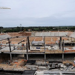 El edificio de la Tribuna Oficial presenta la Losa pronta y un tercio, en el hall, con avance en la Loza superior y los Palcos Vip. Específicamente en los pilares de altura. El hall está pronto y los entrepisos del Palco, en un tercio.