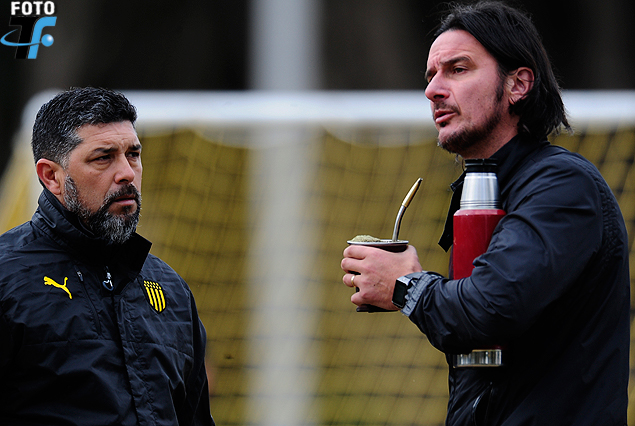 Leo Ramos, técnico de Peñarol y Gonzalo De Los Santos, Director Deportivo,de charla en Los Aromos.