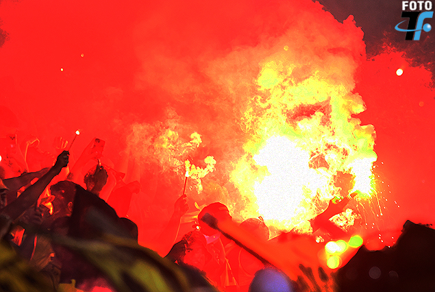 Las bengalas encendidas por hinchas de Peñarol el domingo pasado en el Estadio Luis Franzini.