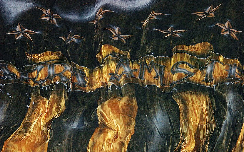 La bandera gigante de Peñarol, desplegada en el Estadio Centenario en 2011.