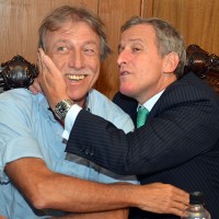 El Esc. Edgar Welker, vicepresidente y Juan Pedro Damiani, presidente, dejaron la polémica para las cámaras en el Consejo Directivo y se dieron un abrazo.