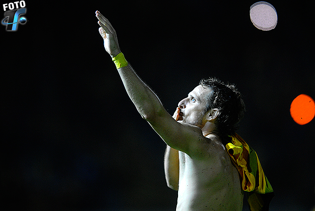 Diego Folrlán festeja el primer gol que se anotó en el Campeón del Siglo.
