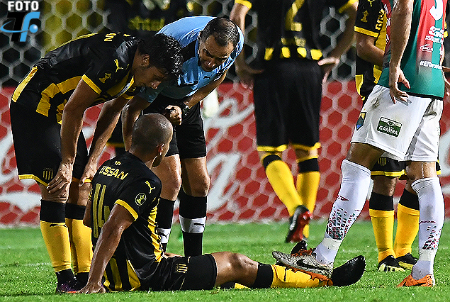 Guzmán Pereira en el momento de la lesión el sábado pasado en el Campeón del Siglo.