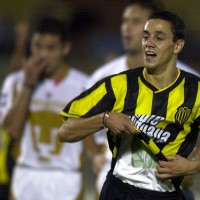 Fabián Estoyanoff festeja el 1:0 ante los Pumas de la UNAM en el Estadio. Victoria carbonera 2:0 en el 2003.