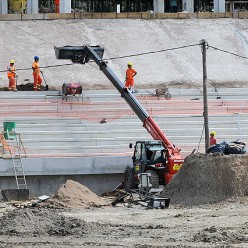 En la Colombes también se completó el trabajo de fundaciones (la parte que se apoya sobre el terreno) , cabezales y vigas. El montaje de grades será en simultáneo a la Amsterdam.