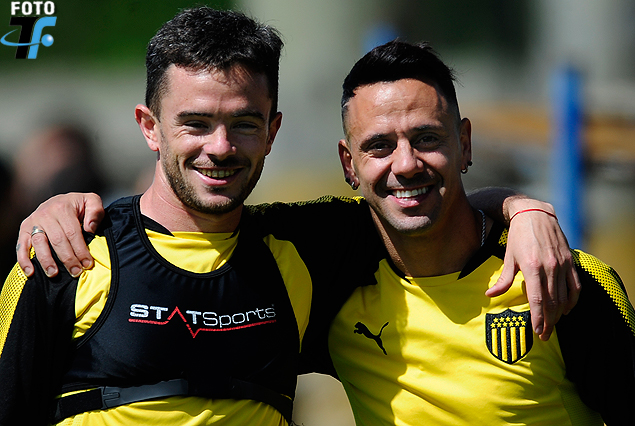 Peñarol en Los Aromos el jueves con Fabián “Lolo” Estoyanoff en el día del cumpleaños, a los 36. Sus compañeros, en la cancha le hicieron la “pasarela” en el ritual con sonrisas. El club prepara la celebración del 127 aniversario, el viernes 28.