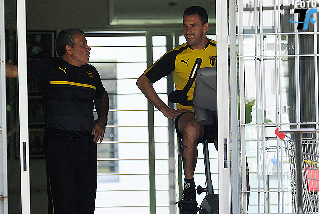 El argentino estará en la cancha en el partido superlativo con el violeta. Siguió con la recomendación de la sanidad en el gimnasio como muestra la imagen junto a Marcos Sosa, fisioterapeuta.