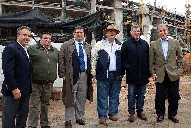 Juan Pedro Damiani, presidente de Peñarol y el Esc. Wilmar Valdez, presidente de la AUF, iniciaron la visita guiada, los dos con el casco puesto. El Dr. Jorge Barrera, delegado de los aurinegros en la AUF, y los gerentes del club, compartieron la presencia de los directivos de la Asociación. Rafael Fernández (vicepresidente de la AUF), hombre de la casa, Fernando Goldie (en la Mesa Ejecutiva) también.