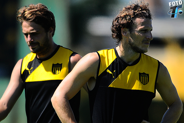 Diego Forlán y Maxi Rodríguez en Los Aromos; el sábado ante Fénix.