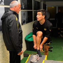 Andrés Rodales realizando trabajos físicos en el gimnasio de Los Aromos.