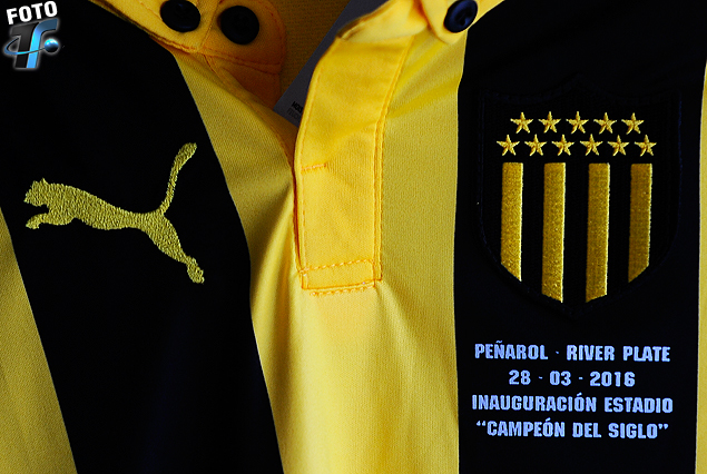 El escudo de Peñarol con fecha histórica 28 de marzo en la inauguración del Estadio en amistoso con River.