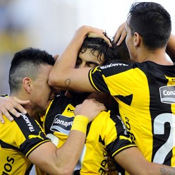 Peñarol en el festejo del triunfo 2:0 a Defensor Sporting y desde el martes piensa en Sud América.