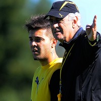 El brasileño Diogo escucha atentamente las indicaciones de Jorge Fossati.