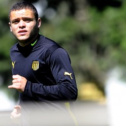 Jonathan Rodríguez en el ataque de los aurinegros el domingo en el Estadio Centenario.