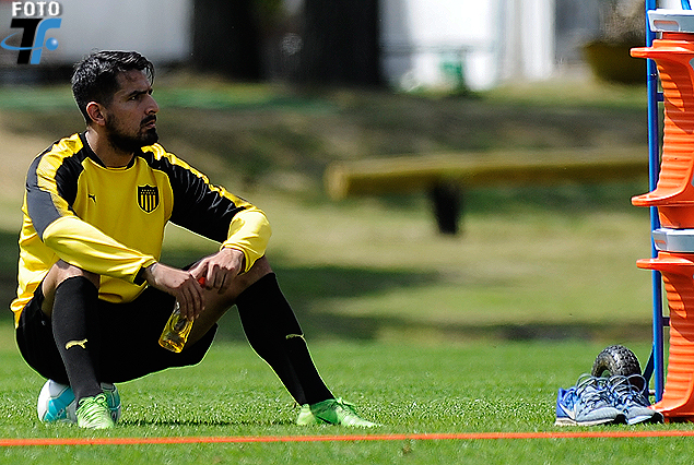 Lucas Viatri el jueves en Los Aromos con los zapatos prontos y la pelota afianzando su retorno del desgarro. Los aurinegros a la cancha el viernes con Rampla Juniors.