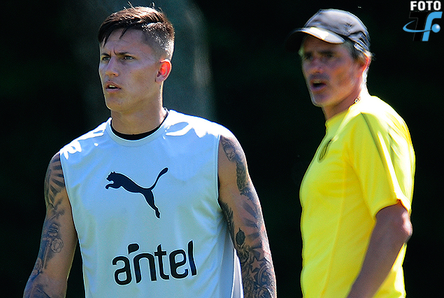 Walter Gargano siguió con la rutina de recuperación de la distensión en el posterior. Gabriel “Toro” Fernández en sesión de bicicleta. El volante y el delantero reaparecerán en la Copa.