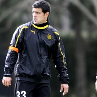 Luis Aguiar camino a los once de Peñarol el domingo en el Estadio Luis Franzini.