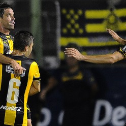 "Tony" Pacheco conquistó el gol de Peñarol y se llevó los abrazos de sus compañeros.