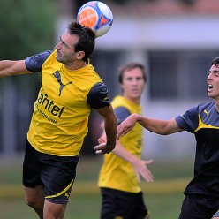 Los titulares en cancha en la práctica de fútbol que los mostró en buen nivel y con triunfo por 2:0 sobre los suplentes, con goles de los Rodríguez. El primero de Facundo y el segundo de “Japo”.