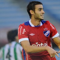 Gastón Pereiro en el festejo del primer gol tricolor. También primer tanto del juvenil a nivel oficial.