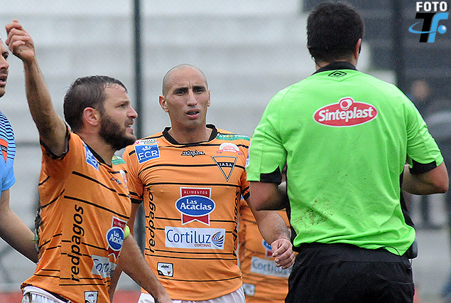 Julián Perujo y el árbitro Jonathan Fuentes, en la incidencia de la expulsión.