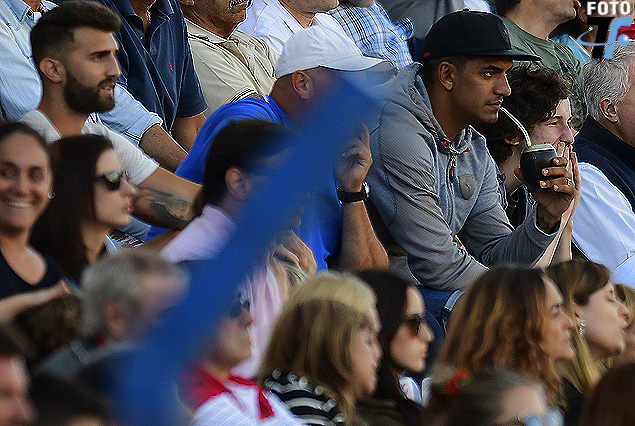 EN LA TRIBUNA: Diego Polenta no jugó por la contractura muscular en el aductor izquierdo y siguió al tricolor desde la Tribuna José María Delgado. El capitán de la cancha a seguirlo como un hincha más. El zaguero a puro mate.