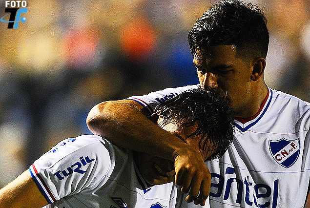 Martín Ligüera recibe el beso de agradecimiento de Diego Polenta. “Estamos felices”, dijo el capitán.