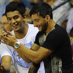 Compañeros… Gonzalo Porras y Diego Polenta, dijeron presente en el estadio Ing. Raúl Goyenola. No integraron el plantel tricolor por encontrarse suspendidos y pese a ello recorrieron los 400 kilómetros que separan a la capital de Tacuarembó, para estar junto a sus compañeros.