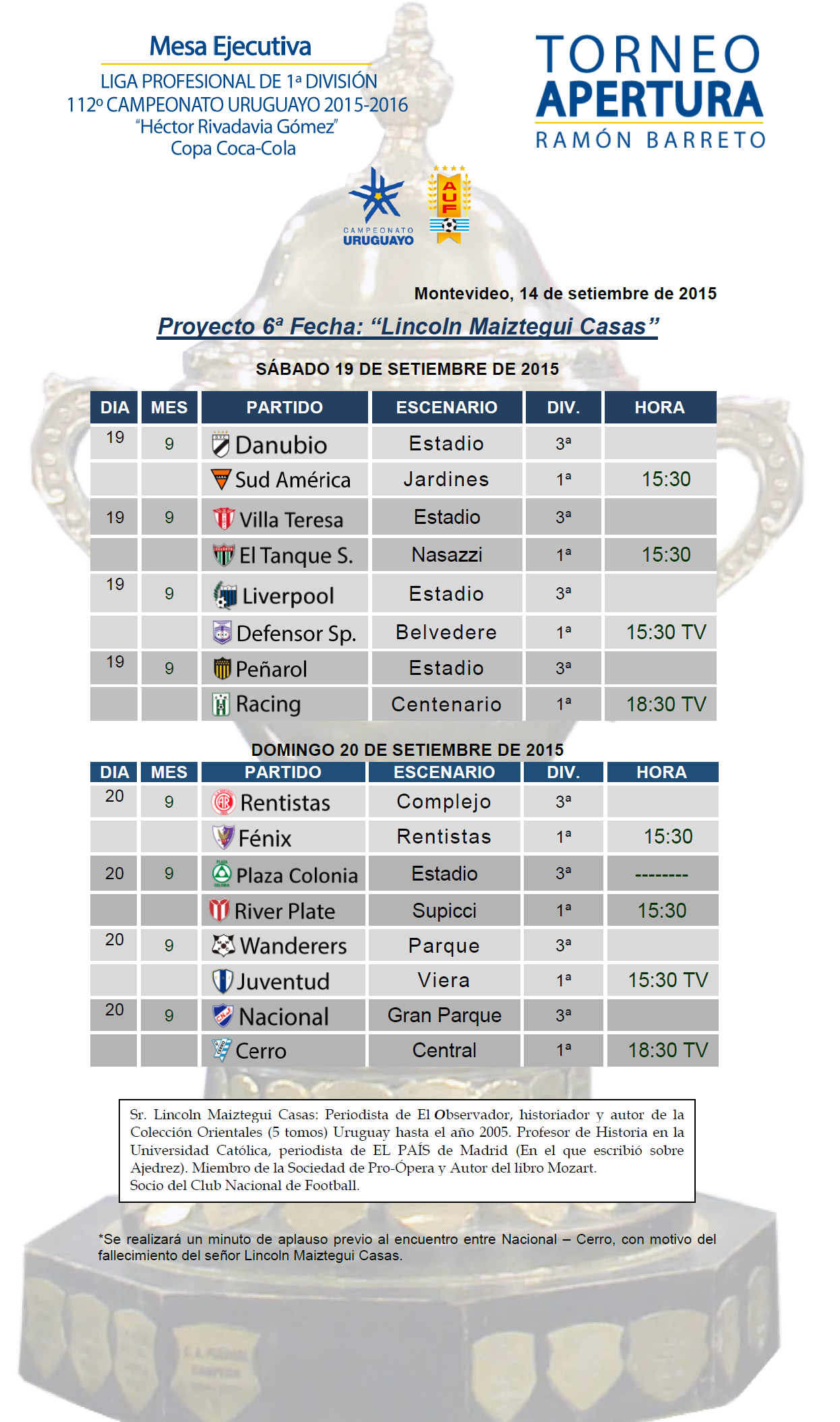 La Comisión de Seguridad trabajó en los aspectos del partido Nacional – Cerro del próximo domingo en el Parque Central y no hubo inconvenientes en que comience a la hora fijada por la Mesa Ejecutiva de las 18.30. De esta manera la sexta fecha se ve ratificada y no se esperan nuevas modificaciones.